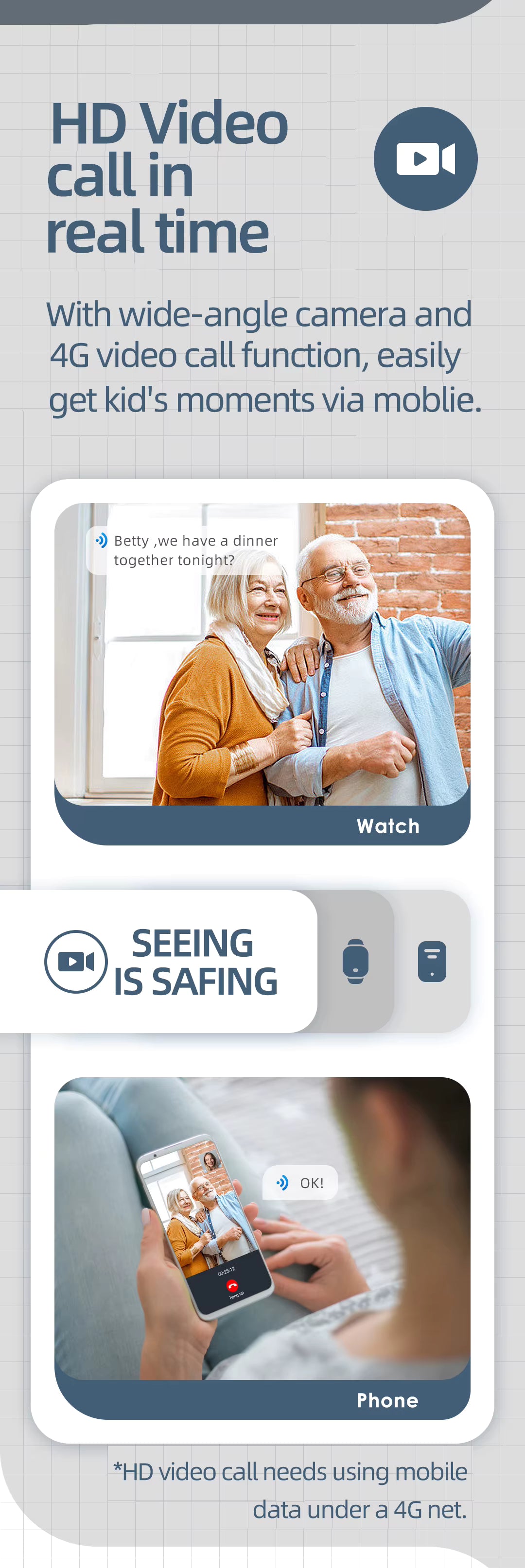 Emergency Functions: SOS alarms, low-battery notifications, real-time location alerts when leaving/entering safe zones